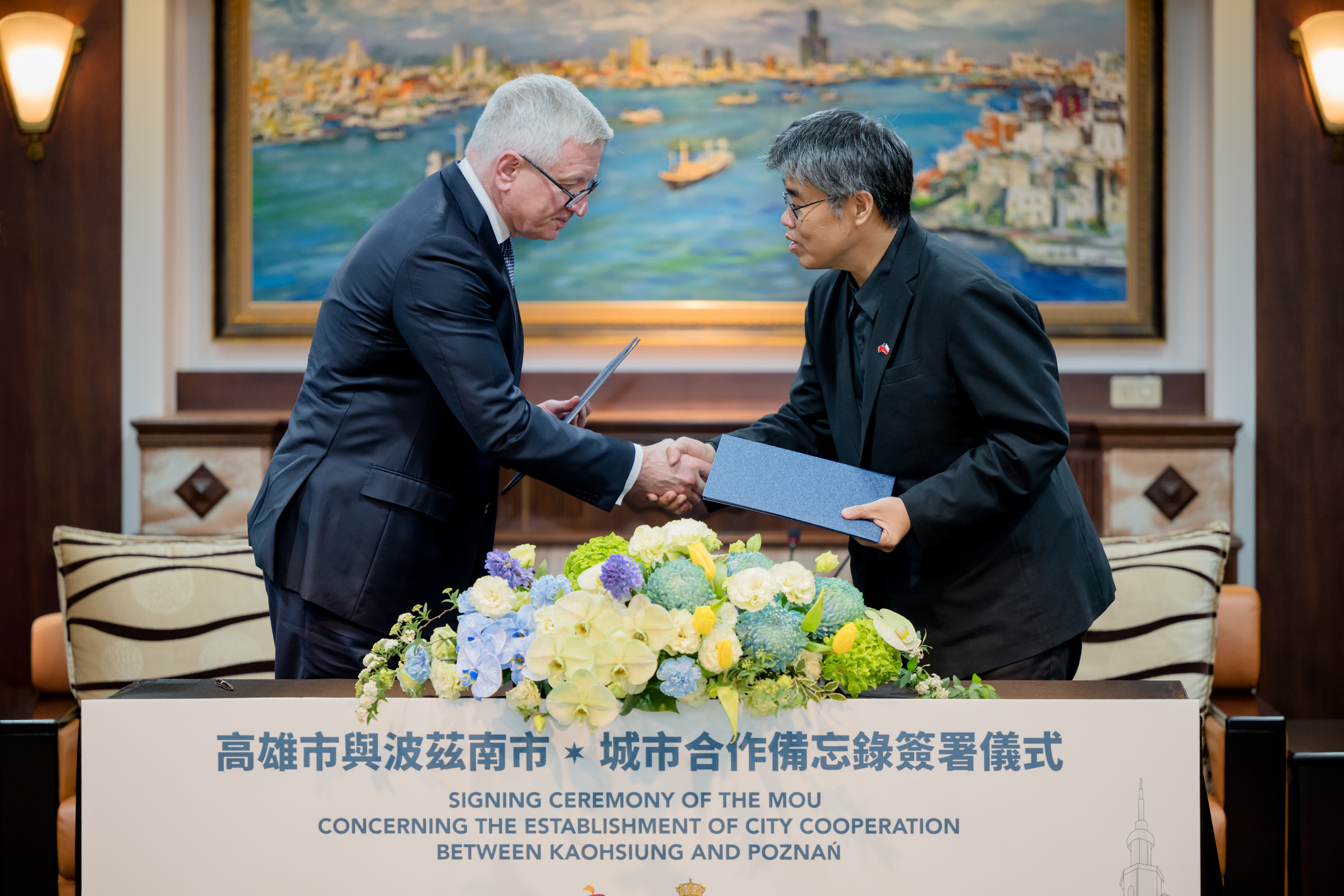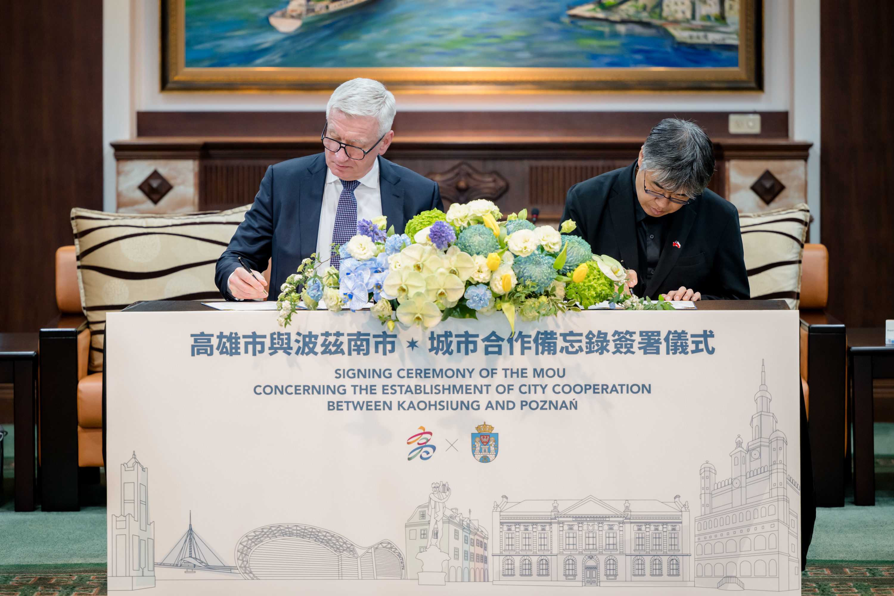 波蘭波茲南市雅斯寇維亞克(Jacek Jaśkowiak)市長20日率波茲南理工大學雅松諾斯基(Teofil Jesionowski)校長一行參與2025智慧城市展,同日拜會高雄市政府,由副市長李懷仁接待,雙方簽署城市合作備忘錄,未來將共同就智慧城市、文化教育、觀光經貿等領域推動合作。雅斯寇維亞克市長表達對高雄智慧城市應用技術、大眾運輸規劃策略的高度興趣,盼深入交流智慧科技、學術合作等議題。高雄市長陳其邁也期盼透過智慧城市的交流,提升兩座城市的城市治理與競爭力,雙方共識未來攜手拓展在各領域的多元合作。