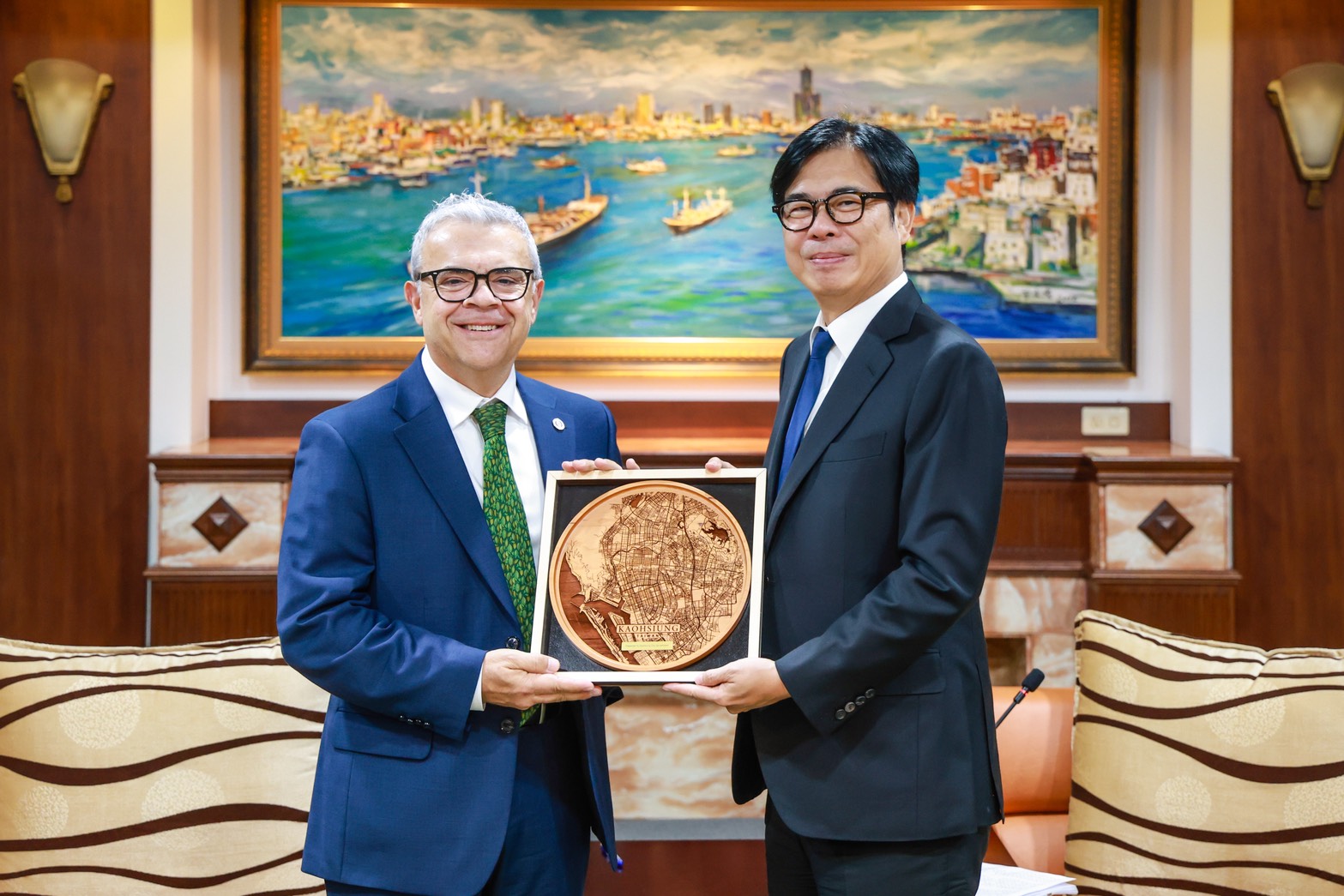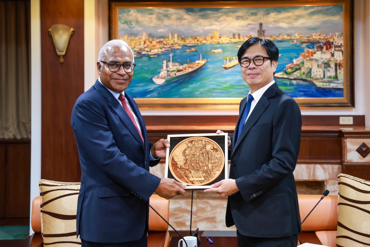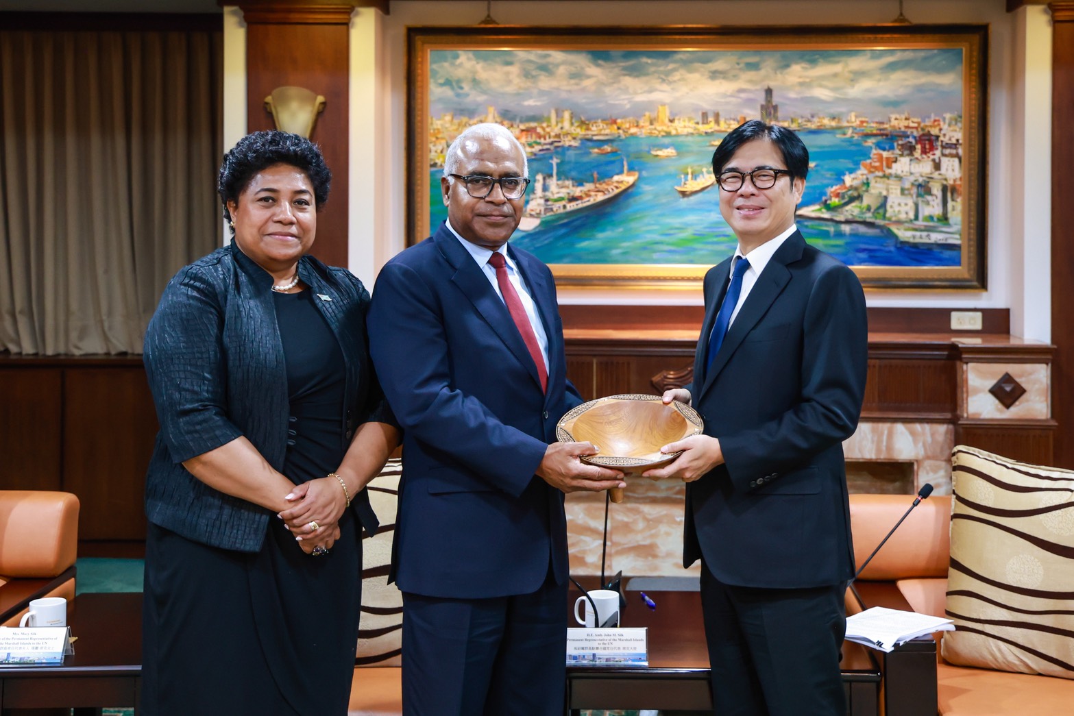 首度造訪高雄的斐濟塔拉吉尼吉尼大使對於高雄在永續發展與城市轉型的成果印象深刻,尤其美麗的高雄港更令他驚艷,期待未來斐濟能在港口發展上吸取高雄的經驗,促進多邊合作機會。陳其邁也指出,台灣與馬紹爾群島及斐濟同樣四面環海,皆面臨極端氣候挑戰,高雄積極推動淨零永續政策,期待持續深化與國際城市合作,共同面對全球挑戰,攜手共創更韌性永續的未來。