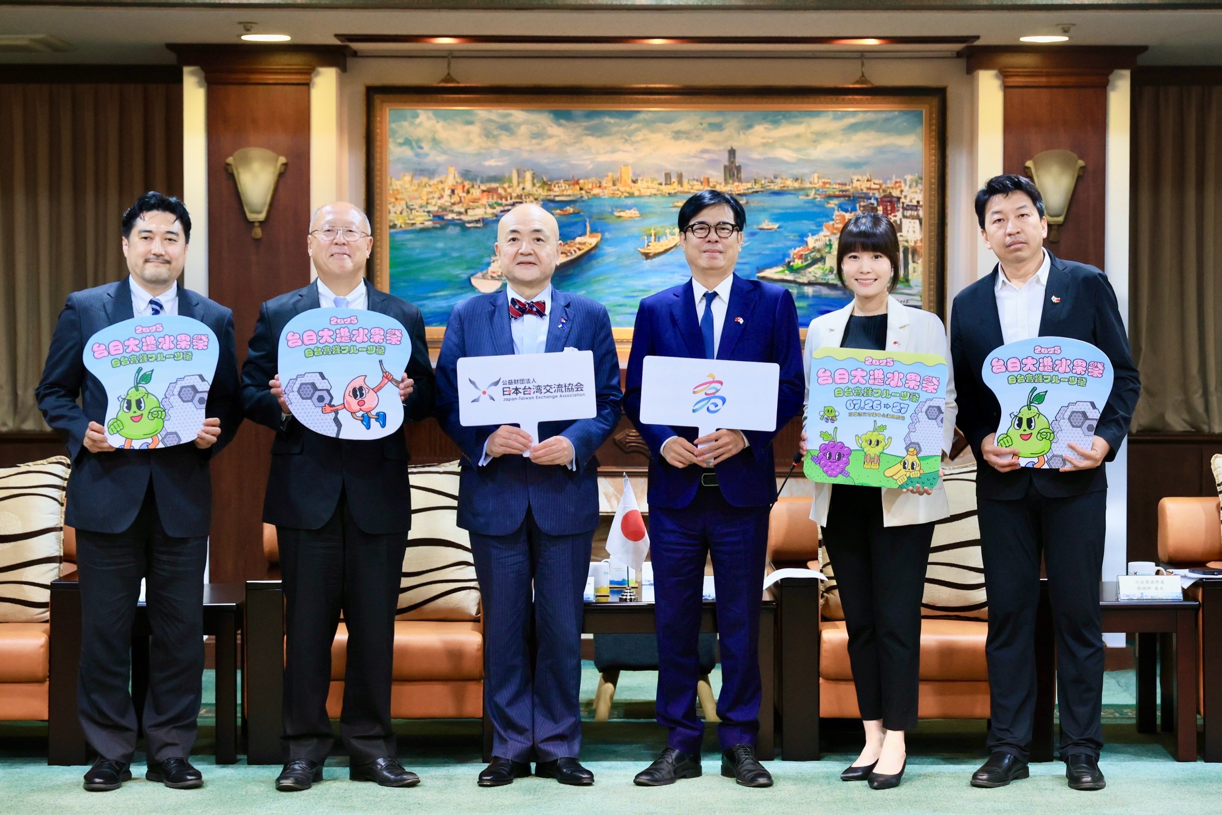 日本台灣交流協會台北事務所片山和之代表偕同高雄事務所奧正史所長6月25日拜會高雄市長陳其邁,雙方就深化台日交流、經貿合作及國際情勢交換意見,並攜手宣傳「2025台日大港水果祭」,為即將再度於高雄登場的夏日台日水果盛會預作暖身。陳其邁表示,很高興能與日本台灣交流協會再度合作舉辦台日大港水果祭,期待透過共同行銷台日水果,展現雙方堅實的友誼與合作關係,同時提升台日優質農產知名度。