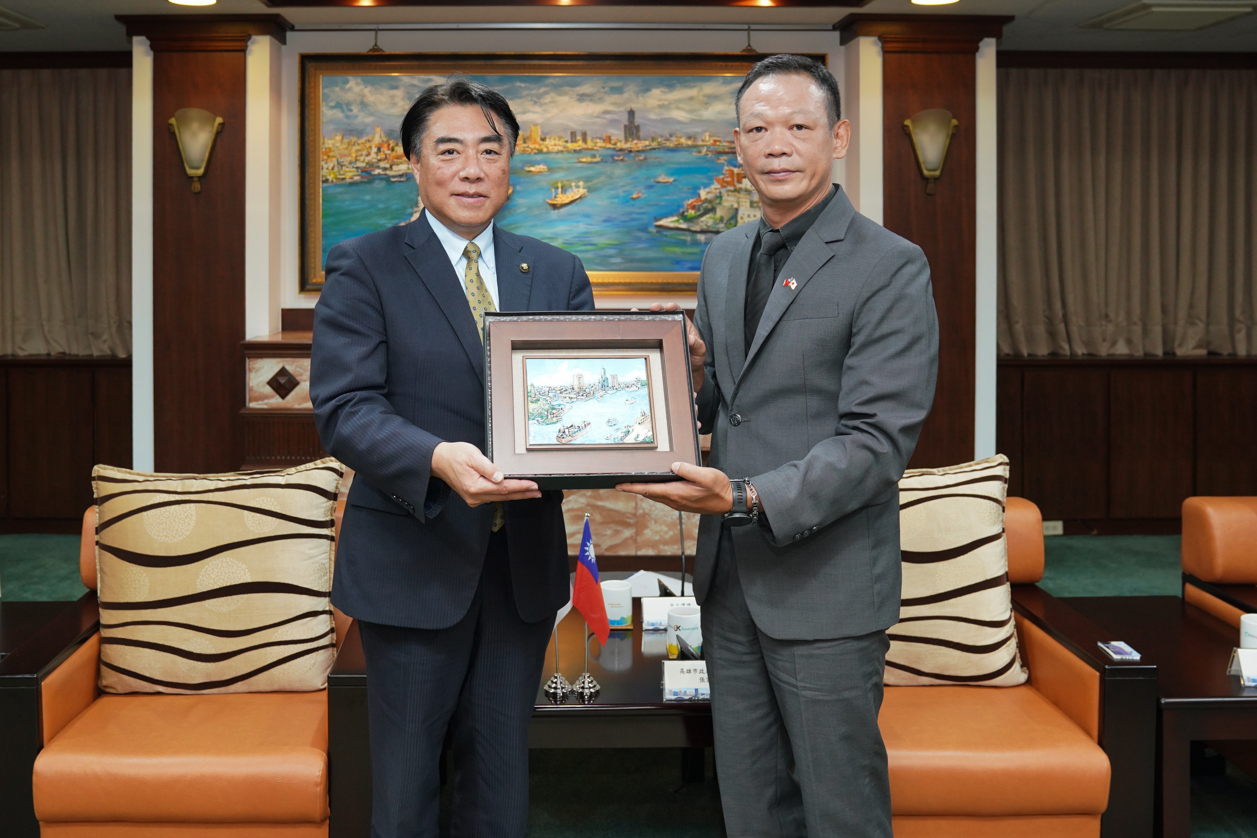 賴重秀一市長也特別感謝高雄市政府邀請沼津市參與「2025台日大港水果祭」設攤展出,與高雄市民分享沼津市的物產與文化。沼津市北臨富士山,擁有優美自然景觀與豐沛水源,盛產茶葉與蜜柑等優質農產品,期盼未來能與高雄在農產品領域展開更緊密的交流與市場合作。賴重市長也提到,在連續兩年舉辦的「台灣企劃展」中,除了介紹沼津市與高雄市的歷史淵源,現場更特別以台灣燈籠佈置,傳達特色文化意象,讓更多沼津市民認識台灣與高雄,盼持續深化兩地觀光互訪與合作,並拓展至體育及產業等領域友好交流。