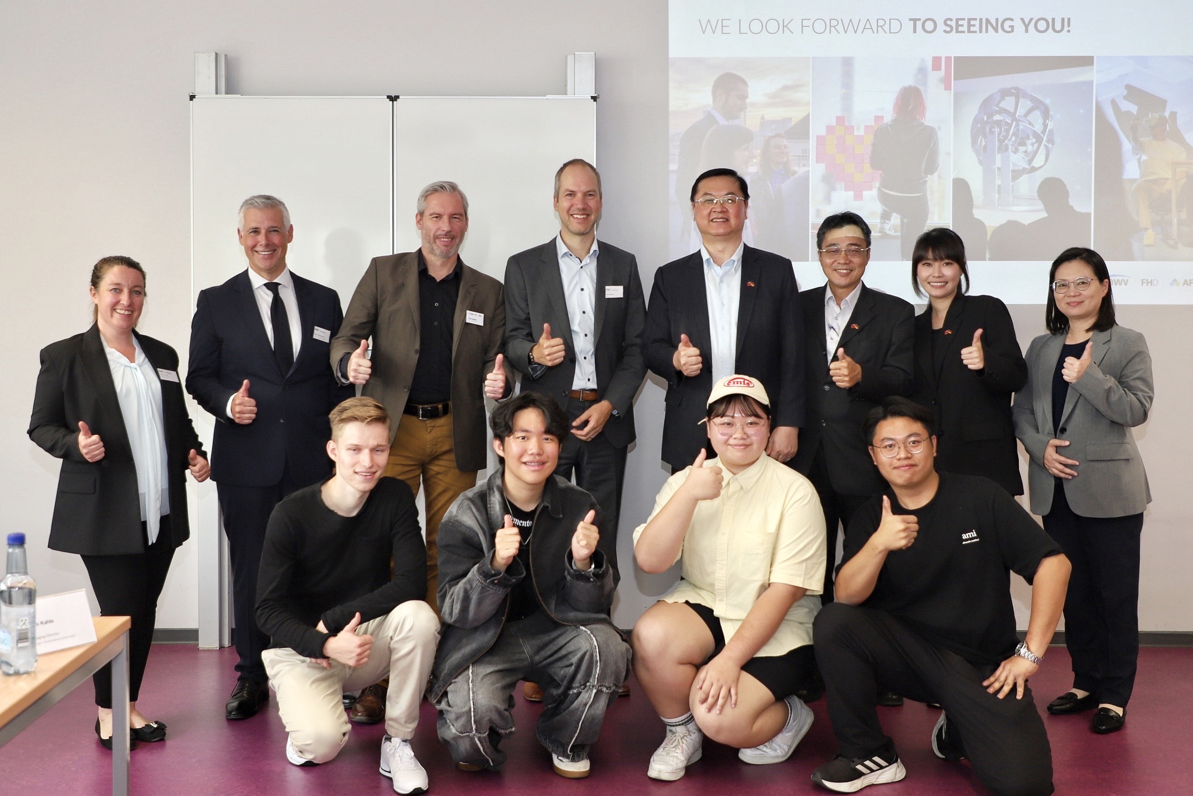 On September 10, the delegation focused on educational exchanges, visiting FHD – University of Applied Sciences Dresden, known for its small class sizes and practice-oriented teaching, and for actively promoting industry–academia collaboration and international exchange. Both sides discussed talent cultivation, academic programs, and AI applications in depth. The delegation also met with Taiwanese students attending summer courses there, listening to their learning experiences and time in Germany in a warm and lively discussion.