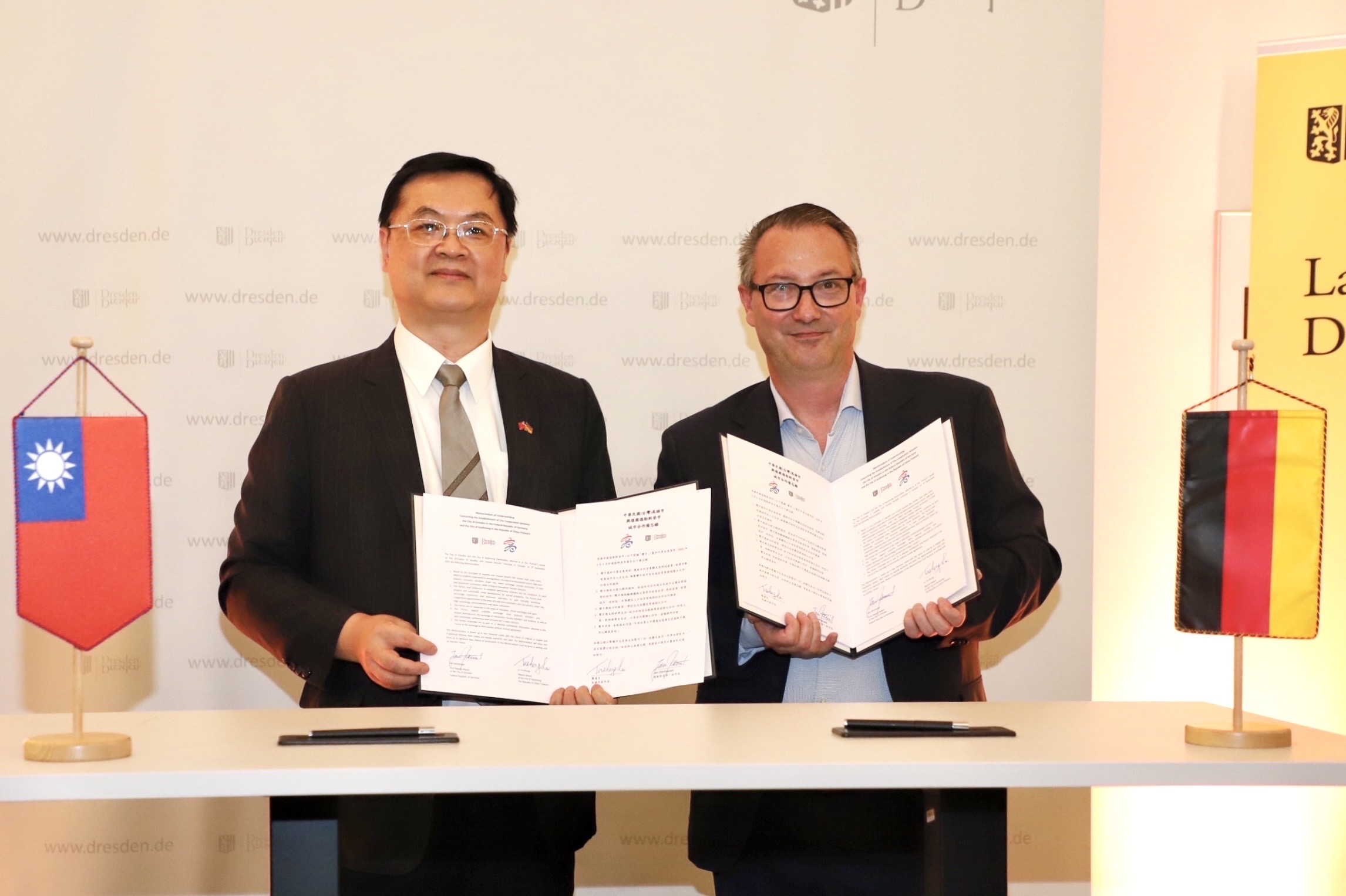 Chang Yen-ching, Director-General of the Department of Administrative and International Affairs, noted that Kaohsiung is committed to city diplomacy. By building official links with cities abroad, Kaohsiung hopes to foster more substantive cooperation while also raising its international profile through coverage in foreign media. Following the signing of the Memorandum of Understanding with Dresden, the city government will continue to coordinate across departments to promote bilateral cooperation in both industry and education.