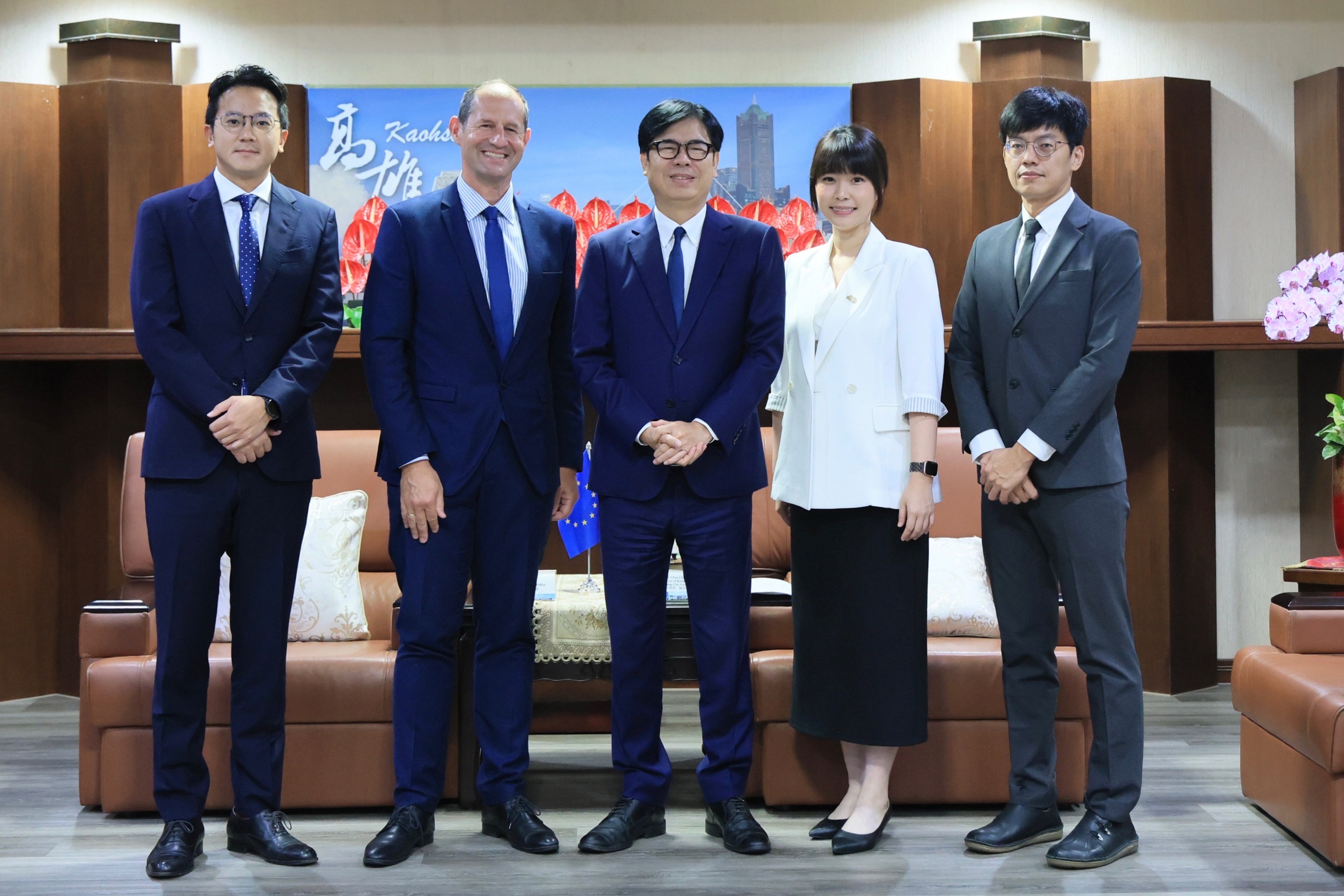 Mr. Güllner expressed his gratitude for the city government's warm hospitality, saying Kaohsiung has always been a vibrant and culturally significant port city. He first visited Kaohsiung in 2011 and has visited six times since taking office last year. He was impressed by Kaohsiung's urban transformation and economic development. Mr. Güllner noted that the EU has long been Taiwan's largest source of foreign investment. During his visit to Kaohsiung, he will also visit European companies that have invested in the city. The EU also values people-to-people exchanges and promotes understanding, hoping to foster further and more diverse cooperation between Europe and Kaohsiung.
